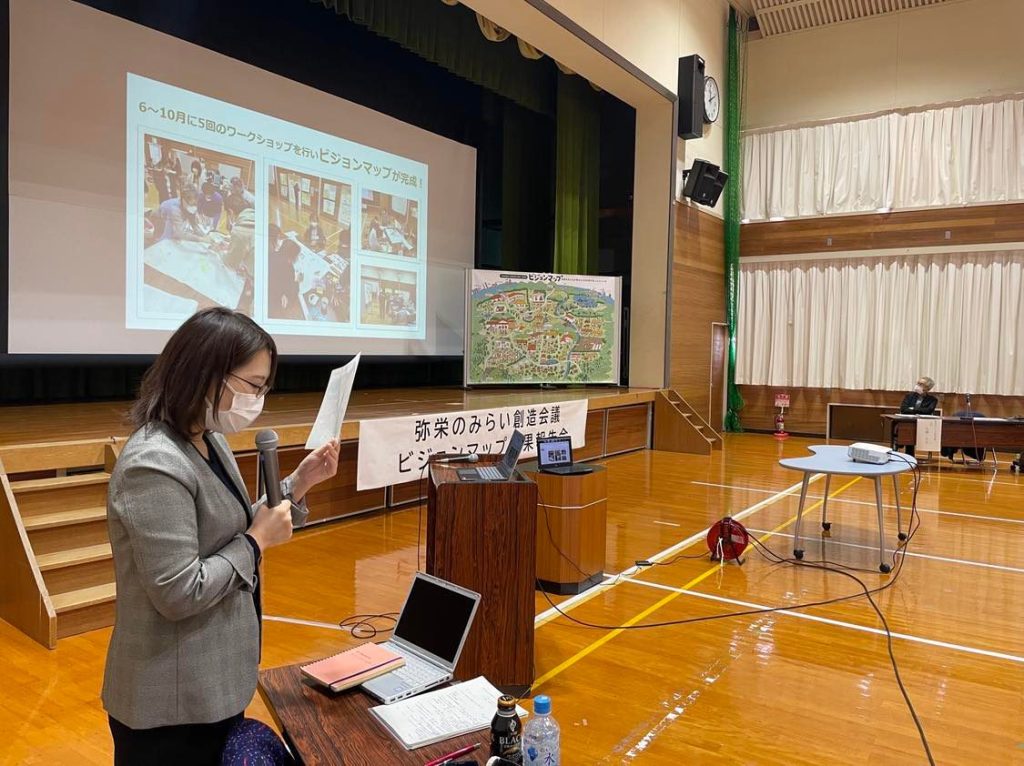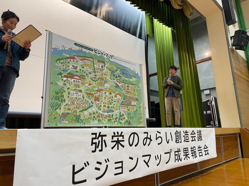 今までの経緯についてお話しいただいた後、地域の皆さまとワークショップを通じて描いた地域の将来像「ビジョンマップ」をお披露目!