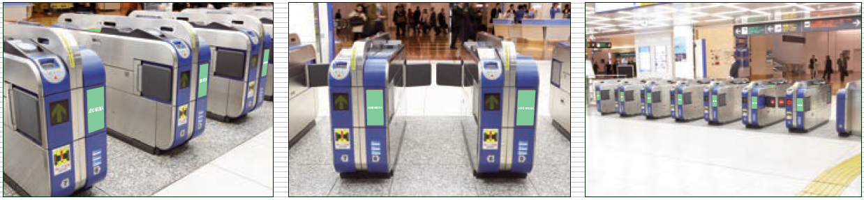 自動改札の側面及び上部に貼る自動改札ステッカーは、改札通過時に自然と目に入る媒体です。
