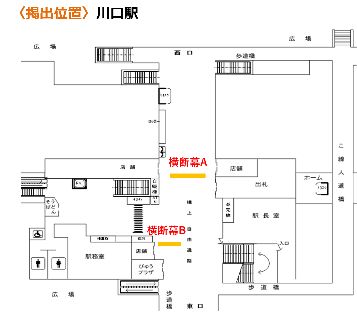 ●非常に流動の多い、改札外自由通路に視認性抜群の2つの横断幕をご用意いたしました。