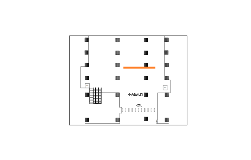 中央改札内吹き抜け壁面へ投射します。
