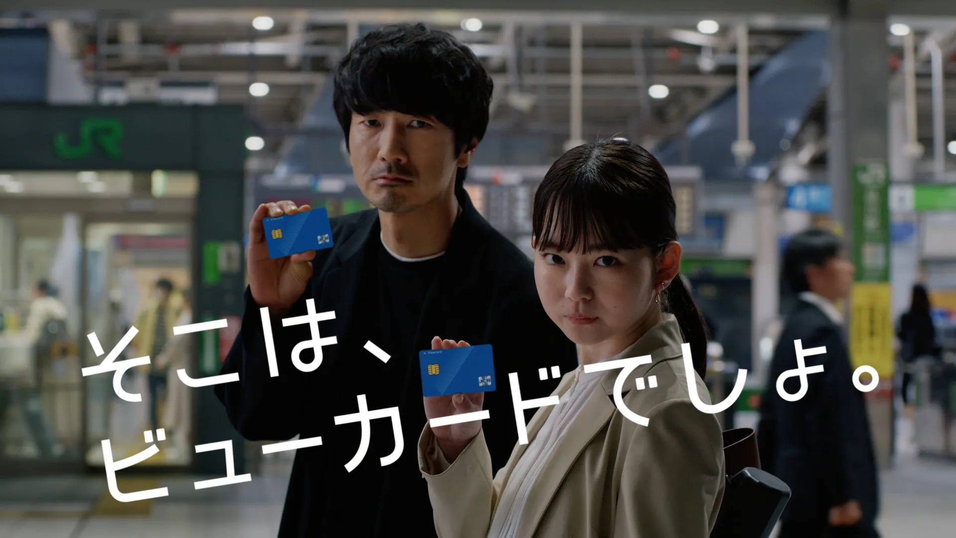 シリーズを通して描きたかったのは、「笑いが止まらなくなるビューカード」です。改札を通ったり、定期券を買ったり。一見、日常的なことをしているだけですが、実はビューカードなら、たんまりポイントがもらえる。その内心の喜びや優越感にこらえ切れず、ユーザー役の眞島秀和さん、山田杏奈さんが思わず高笑いしてしまうシーンが見どころです。
