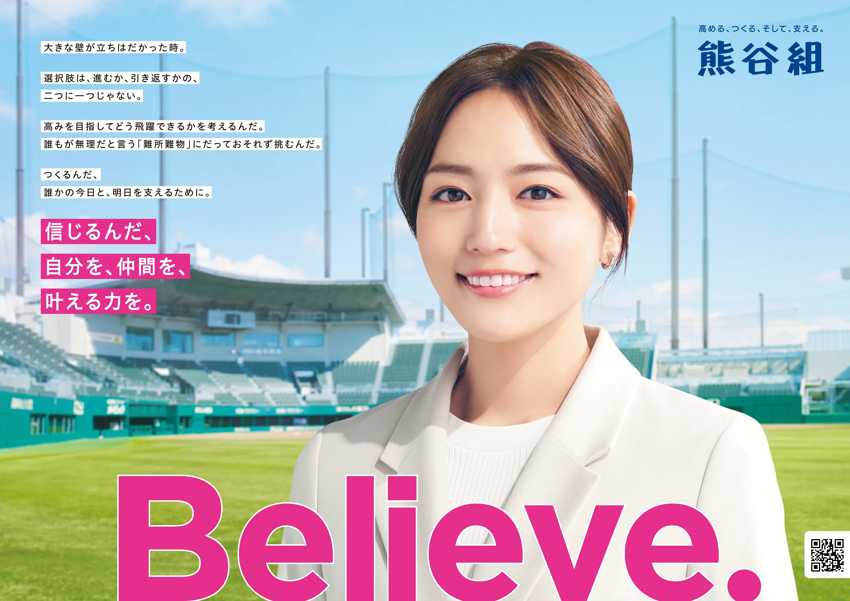 2022年度より3作にわたって、企業広告シリーズを制作。熊谷組社員役として川口春奈さんを起用し、熊谷組の高い技術力や仲間とのチームワークで、難易度の高い建築物を実現してきた熊谷組の姿を表現しています。